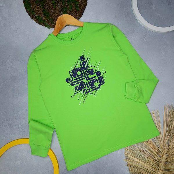 تیشرت مشکی پسرانه طرح آستین بلند اللهم عجل لولیک الفرج برجسته بزرگ | بچگانه (۱۲ تایی)