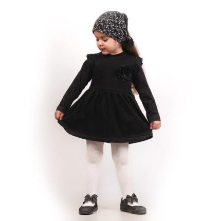 پیراهن مشکی دخترانه طرح گل درشت آستین بلند بزرگ | بچگانه (۹ تایی)